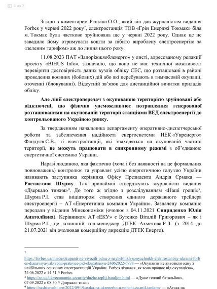 «Итак получается, что все участники процесса и должностные лица уполномоченных госорганов были ознакомлены с ситуацией и понимали, что осуществляются платежи за э/э, которая была произведена оккупированными СЭС и не поставлена в энергосети Украины, но не приняли меры по ее урегулированию и остановке транзакций.