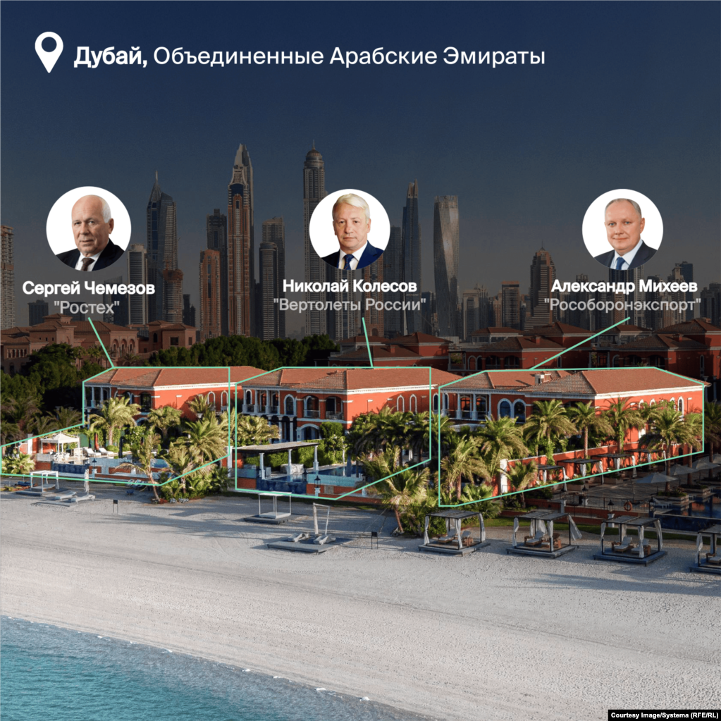 Наименее скрытным оказался главный экспортер российского оружия Михеев. Его вилла под номером четыре и общей площадью 1788 квадратных метров граничит с большим общим бассейном и, как следует из данных C4ADS и Земельного департамента Дубая, оформлена на сына Михеева Алексея. Михеев-младший отказался от комментариев, в "Рособоронэкспорте" не ответили на запрос.